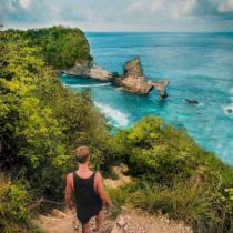 Внизу, скрытый под высокими скалами и холмами полуострова, прячется пляж Kelingking Beach, настоящий райский уголок, который заставит вас раз и навсегда полюбить Нуса Пенида.