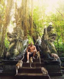 🐵 Священный Лес Обезьян - это большой парк - джунгли, который находится прямо в центре Убуда, среди индуистского храмового комплекса и многовековых деревьев 🌳. Это настоящий рай для обезьян, которых тут несколько десятков сотен🐒. Они могут подойти прямо к вам, взобраться на вашу ногу и прогуляться с вами, сидя на вашем плече.
