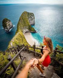 Внизу, скрытый под высокими скалами и холмами полуострова, прячется пляж Kelingking Beach, настоящий райский уголок, который заставит вас раз и навсегда полюбить Нуса Пенида.