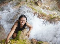 Дорога к водопаду не так проста. Вы преодолеете путь в 700 ступеней вдоль отвесной скалы - настоящее испытание для смелых духом, которое подарит воспоминания на всю жизнь. Небольшой, но напористый водопад, бьющийся о скалы, вид на бирюзовые воды океана и самый настоящий природный бассейн с родниковой водой