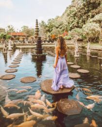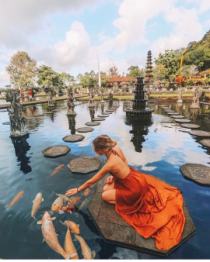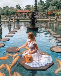 Одно из самых популярных мест и самых невероятных по праву занимает этот дворец. Затерявшись в долине рисовых полей, раcположен прекрасный архитектурный памятник – водный сад Тиртагангга. Место действительно хорошее, в нем есть несколько бассейнов, в некоторых вы можете купаться, а в других вы можете ходить от камня к камню и ходить по пруду, полному фантастических статуй индуистских богов Место удивительно красивое, и одно из любимых нами на Бали.